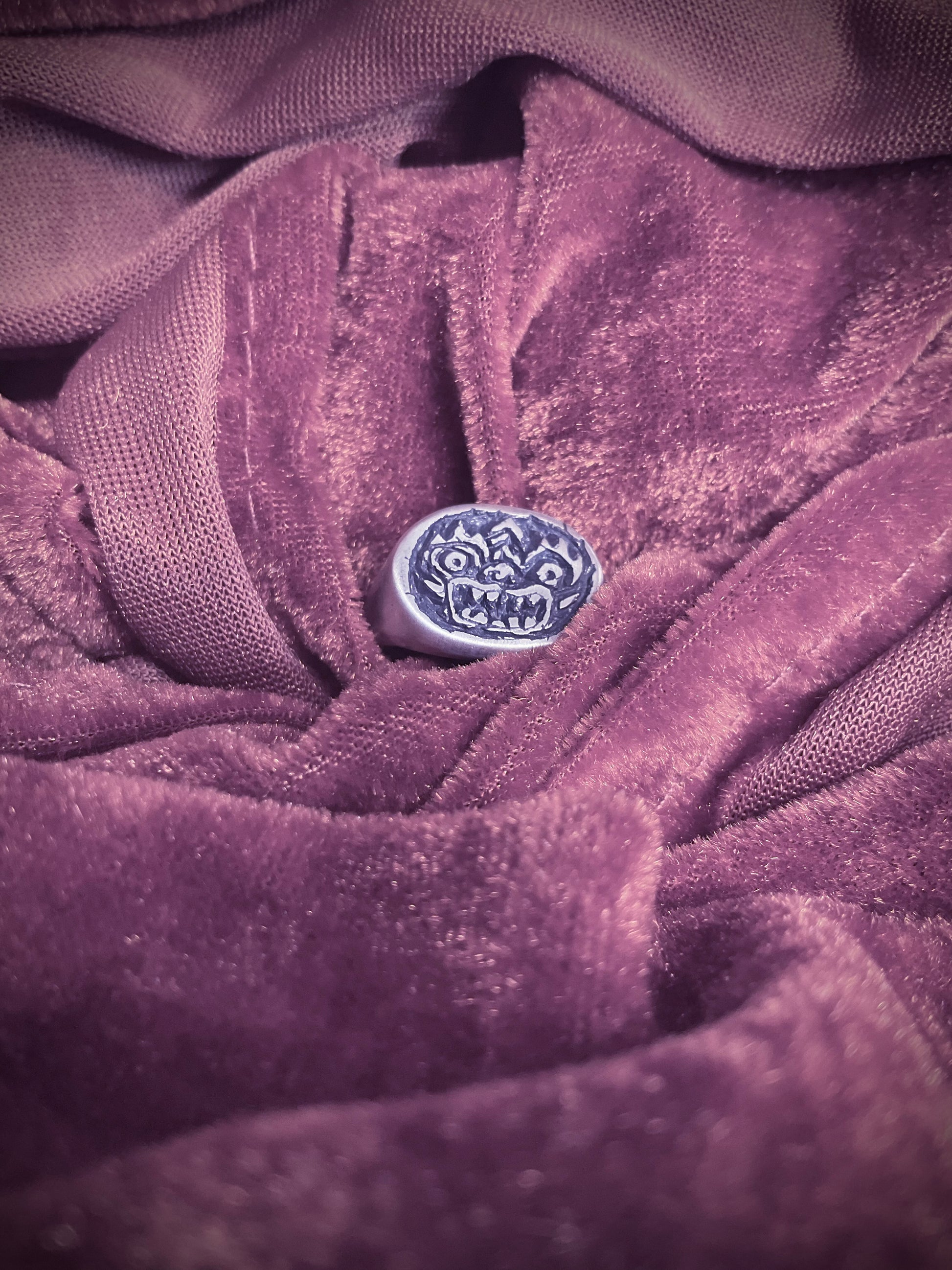 This piece is a personal creation, inspired by the protective symbol of traditional Korean roof tile decoration, reimagined in a modern ring form.